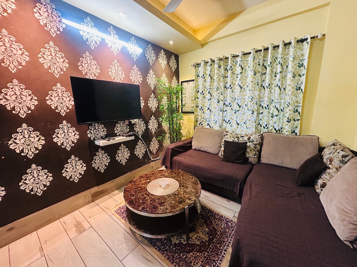Disfruta de una estancia inolvidable con tus seres queridos en este apartamento 3BHK totalmente amueblado y céntrico en el corazón del sur de Calcuta, con una decoración elegante y moderna. 🛏 Capacidad para 4 personas | 3 dormitorios | 2 baños 📍 A solo 500 m de Gariahat Televisión 📺 inteligente con Netflix, Prime Video 🛗 Primer piso con ascensor Servicio de limpieza 🧹 diario incluido ✅ Exclusivamente para familias No se permiten hombres🚫 solteros ni parejas no casadas. Cocina 🍽️ modular con utensilios, horno, microondas y nevera ❄️ Todas las habitaciones tienen aire acondicionado para tu comodidad.