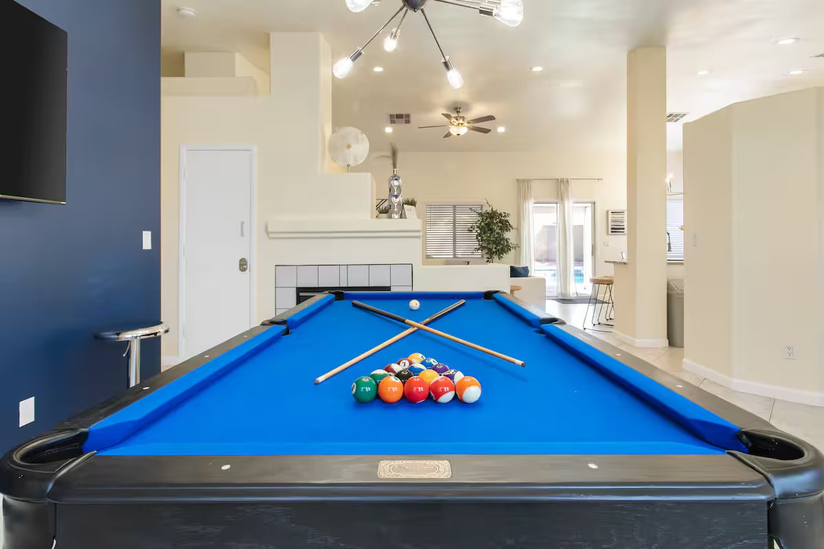 ¡Bienvenido a tu refugio en Las Vegas! Esta casa de 4 dormitorios se encuentra en el norte de Las Vegas, a solo 9 millas del Strip. Siéntete como en casa con todo lo que tenemos para ofrecerte en tu escapada moderna. Tanto si quieres disfrutar del animado Strip, jugar al golf en campos perfectamente verdes o experimentar el majestuoso cañón Red Rock, nuestra casa es el refugio perfecto para ti. Ven a nadar a la refrescante piscina, juega al billar con tus seres queridos, pero lo más importante, ¡prepárate para tu próxima aventura!