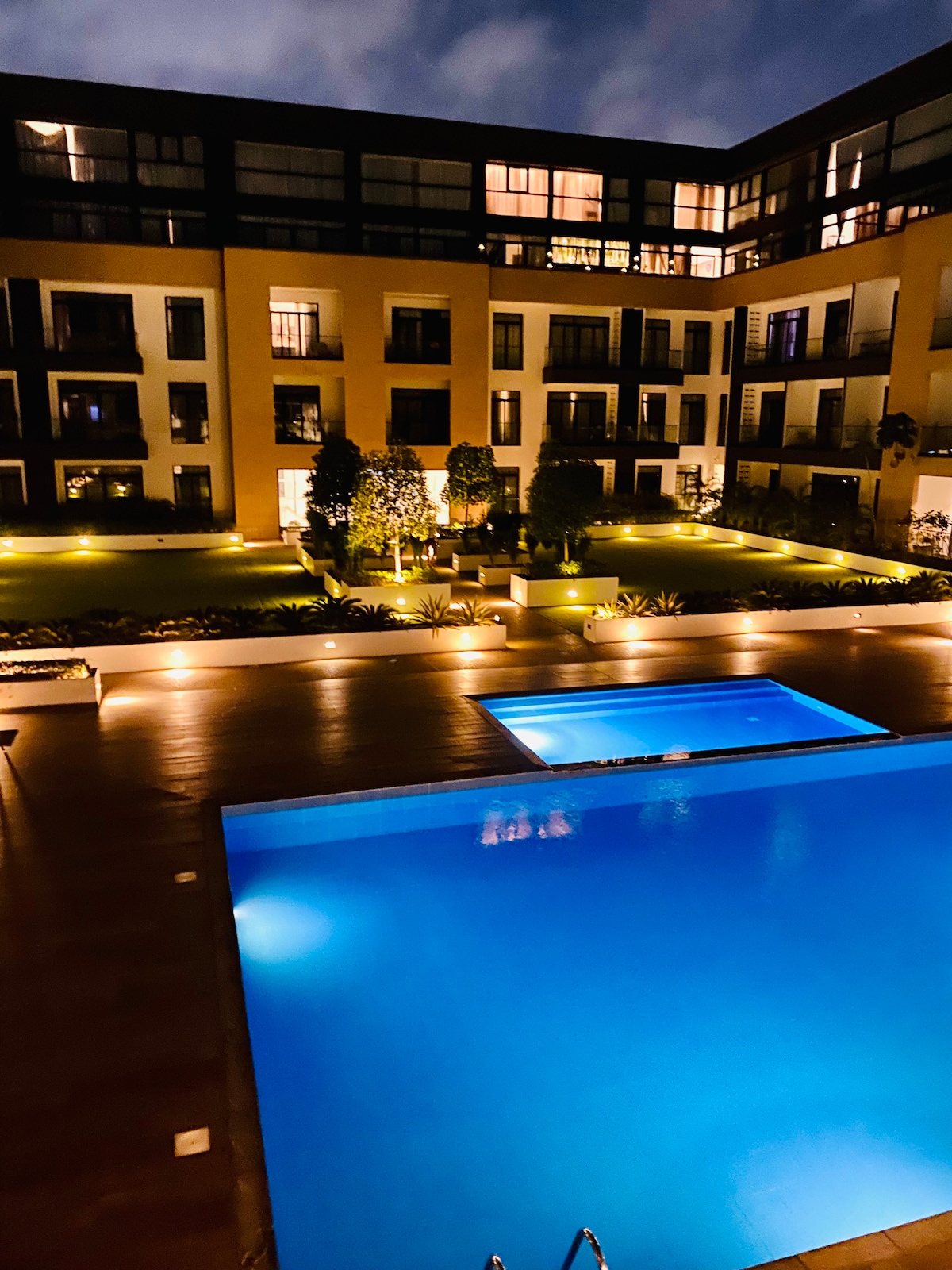 Despiértate con vistas tranquilas al jardín desde tu balcón privado en Cantonments, Embassy Gardens. Los huéspedes elogian nuestras tres piscinas, el gimnasio totalmente equipado y la cocina moderna. Disfrutarás de wifi gratuito, Mi-Fi, TV inteligente con Netflix, sábanas frescas y seguridad las 24 horas. A minutos del aeropuerto, playas y la vibrante Oxford Street. La mayoría de los huéspedes desearían haber reservado antes. Agrega este alojamiento a tus favoritos ahora para una experiencia verdaderamente inolvidable en Acra.