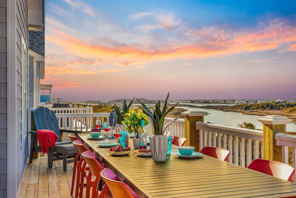¡Ven a disfrutar del lujo frente al mar a un precio familiar! Nuestro condominio en el último piso ofrece impresionantes vistas al resplandeciente océano Atlántico, a la bahía de Chadwick y a los pantanos de los alrededores. El espacioso diseño de 1 dormitorio/2 baños con literas en el pasillo y un sofá cama en la sala de estar duermen cómodamente hasta cuatro adultos y dos niños. Todos los huéspedes tienen acceso al St. Regis Resort, que es exclusivo de Topsail Island. Ten en cuenta que el edificio adyacente a nosotros está en construcción otoño/invierno '25