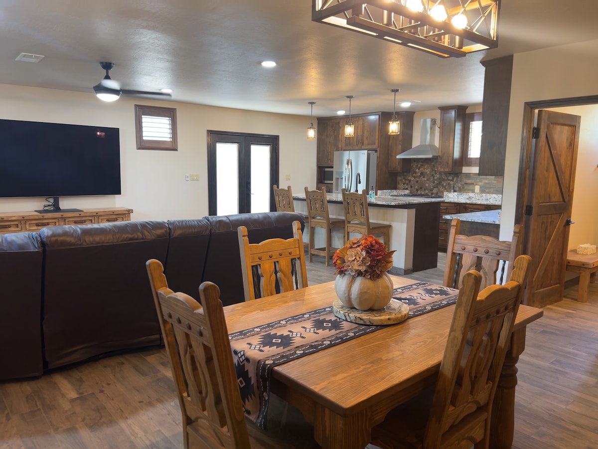 Nuestro hermoso hogar del suroeste incluye una cama queen size, además de un sofá cama en la sala de estar. Adjunto a la sala de estar hay un comedor con capacidad para 4 personas. Además, ofrecemos todo lo necesario para disfrutar de un relajante hogar lejos de casa con un jardín de meditación para caminar, dos patios para cenar, un columpio de madera al aire libre para relajarse con una taza de té por la mañana, un fogón para que los s'mores disfruten de las hermosas noches de Albuquerque. Estamos cerca del río, senderos, parques y mercados.