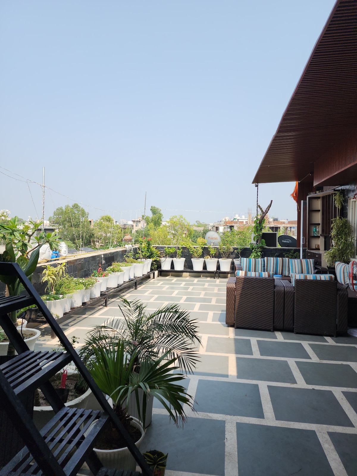 LA STAYS offering Luxury terrace retreat in Vikaspuri, Delhi featuring a private open air jacuzzi, terrace garden and beautiful garden-facing views. ✨ Experience refined comfort with a private open-air Jacuzzi and spacious terrace in West Delhi. This elegant 1BHK blends style, privacy, and relaxation for elevated staycations. Enjoy a serene stay while being centrally connected to markets, metro, cafes, and top city hotspots. Ideal for relaxing getaways, celebrations, and luxury stays.