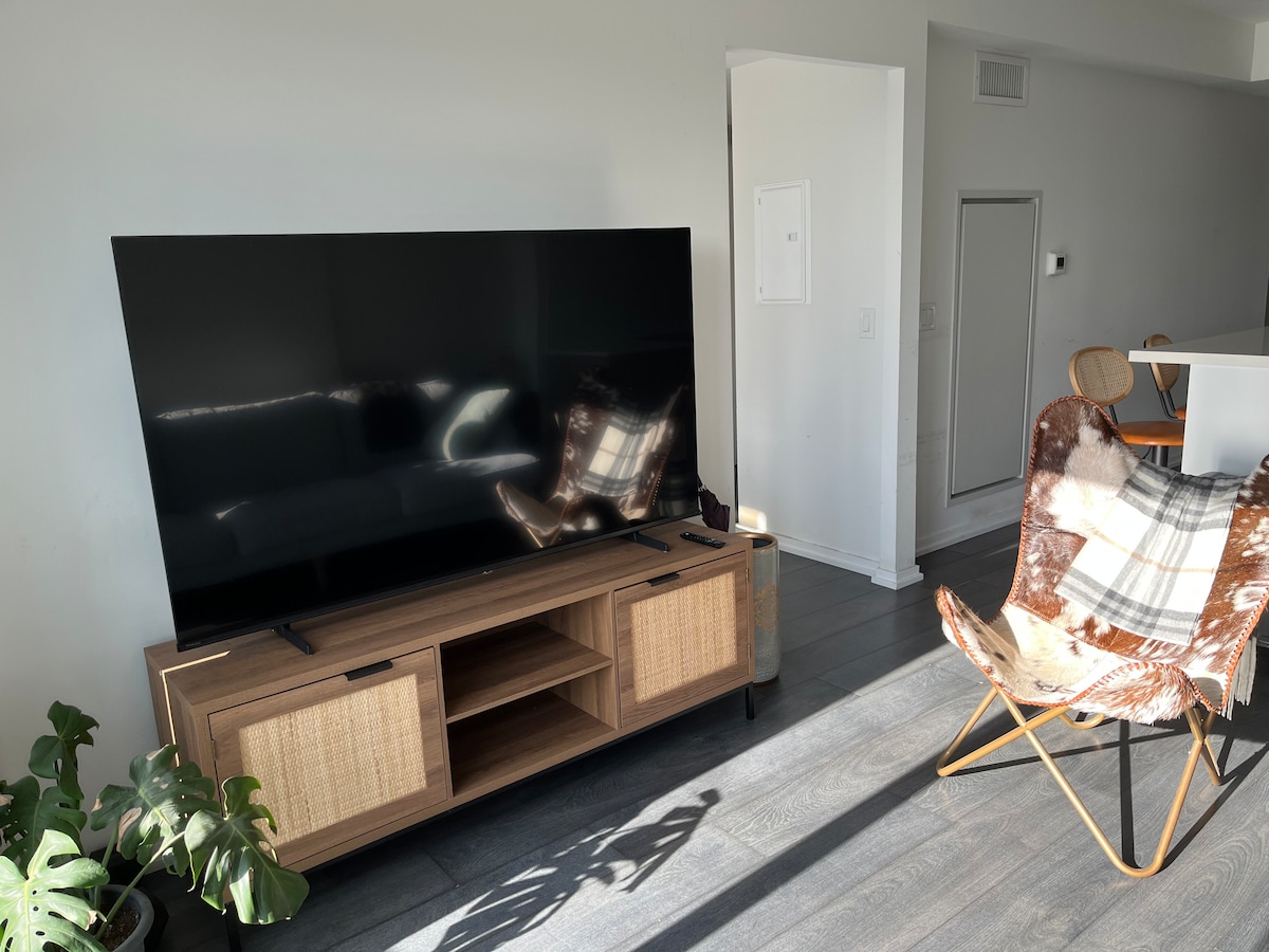 Relájate en este tranquilo apartamento en el sótano, ¡te sentirás como en casa tan pronto como entres! Incluye una entrada independiente privada a la suite, completa con un dormitorio con una cómoda cama tamaño queen, un baño privado, cocina completa con café, té y refrigerios de cortesía, así como una sala de estar con sofá cama, TV y espacio de oficina personal. También hay disponible un lugar de estacionamiento gratuito. Este encantador lugar es perfecto para viajeros de negocios, estudiantes internacionales, jóvenes profesionales y parejas.