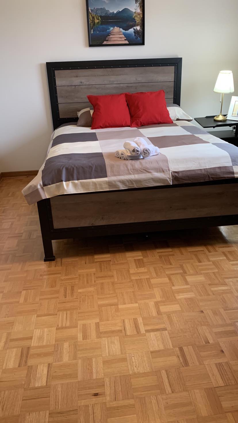 Precioso y amplio dormitorio principal con baño privado. Convenientemente ubicado junto al centro comercial Yorkdale, estación de metro, rutas de autobús, restaurantes, bancos, conectando con todos los servicios a pocos minutos a pie. Casa recién reformada con muebles nuevos, cocina, dormitorio y baño. Nuevos colchones/almohadas de espuma viscoelástica. Se puede reservar una plaza de aparcamiento gratuita. Café, té y wifi de alta velocidad gratuitos. Ideal para estancias, alternativa de trabajo desde casa, negocios y familias.