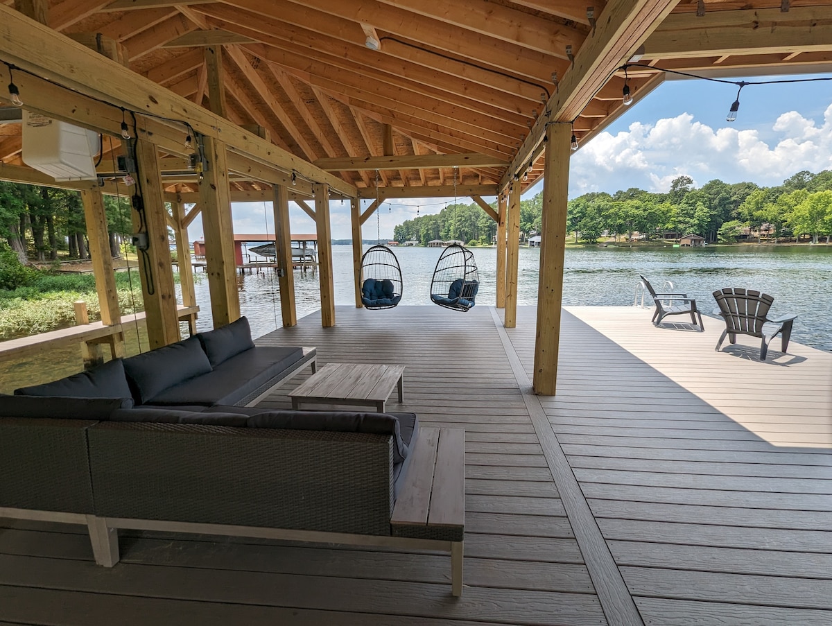 Relájate con la familia en esta hermosa casa de Roanoke Rapids Lakehouse que aparece en VisitNC (enlace incluido en las fotos). Trae tu propio barco para pescar o esquiar todo el día, con la capacidad de amarrarlo en el cobertizo para botes para un uso diario fácil. Crea recuerdos con todos en las carrozas, kayaks, tabla de paddle, bote de pedales o disfruta de un chapuzón familiar en la piscina para ver la puesta de sol. Los perros son bienvenidos por una tarifa por mascota (máximo 2 perros).