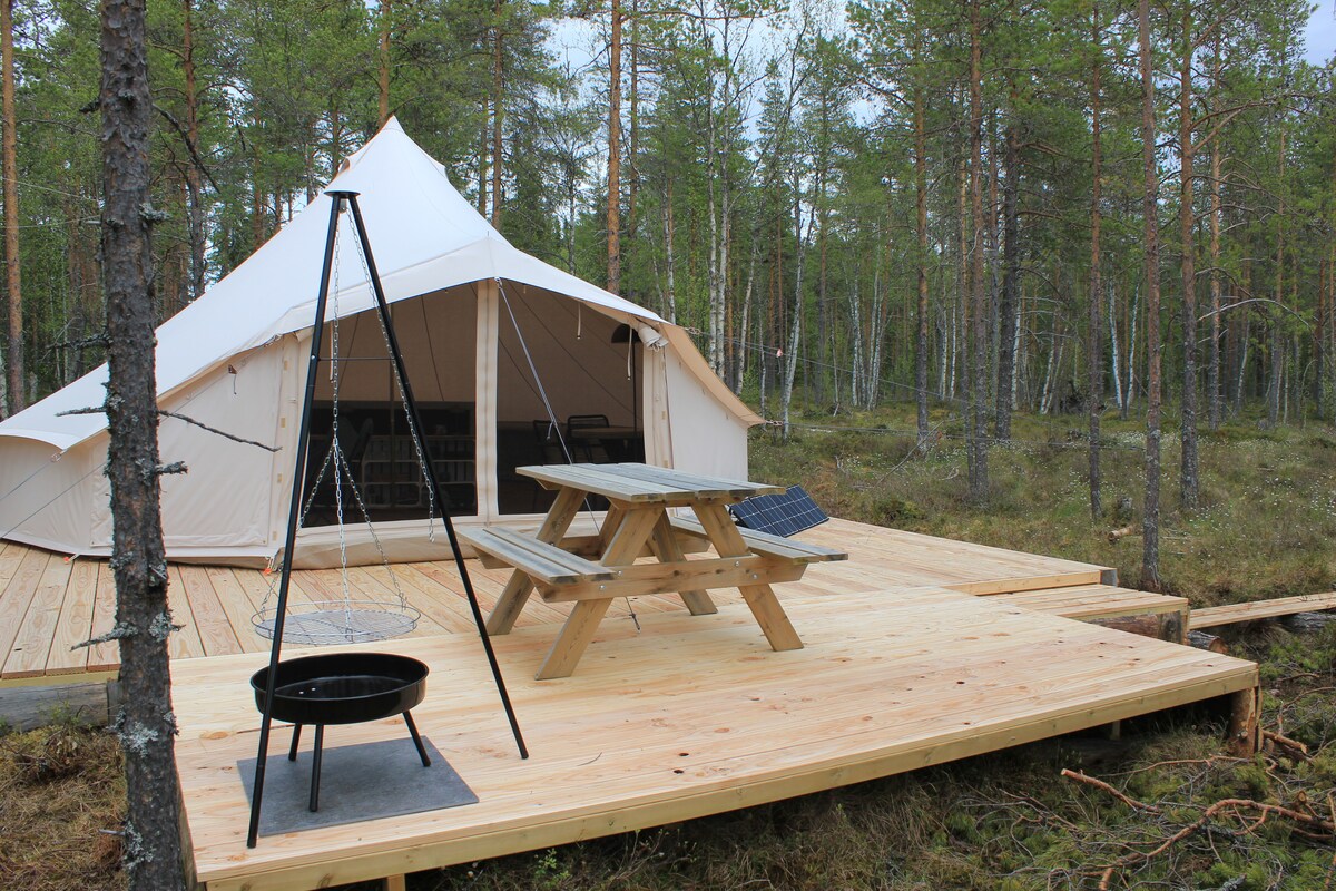 Vida salvaje lenta en una cómoda tienda de campaña en tu propio lago. ¡Disfruta del silencio, la paz y la belleza del verano interminable de la Laponia sueca! ¡Abierto desde junio hasta finales de septiembre! Disfruta del spa wildernes: tu propia barrlsauna privada justo en el lago. ¡Disfruta de un enfriamiento en el lago, a solo unos pasos de la sauna! También ofrecemos la posibilidad de una ducha sencilla pero cálida en nuestra ducha al aire libre con vistas al lago. Ofrezco sesiones de fotos para capturar tus recuerdos inolvidables, ¡el mejor recuerdo!
