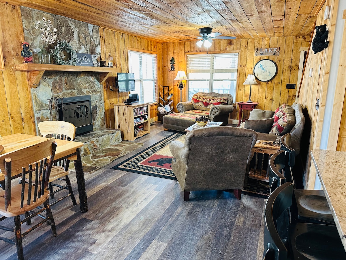@MountainLakeBeach presenta nuestra popular casa de campo Lake Nottely con excelentes vistas a la montaña y aguas profundas durante todo el año. Hermosa casa de campo de 2000 pies cuadrados renovada junto al lago tiene 3 dormitorios y 3 baños completos con capacidad para 8 personas (6 adultos como máximo) y es apta para perros. Ofrecemos una parrilla de gas Weber, una cocina totalmente surtida, sábanas y ropa de cama, TV de pantalla plana, WiFi rápido y juguetes acuáticos de temporada (2 kayaks tándem, 2 tablas de paddle y nenúfar, - Barco NO incluido) * Los muebles y la ropa de cama pueden cambiar