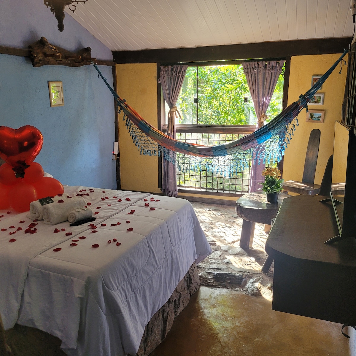 Para aquellos que quieren tener la experiencia de acampar pero con glamour, esta cabaña con encanto puro te espera. La nueva tendencia Glamping es acampar con lujo. Nuestra cabaña, toda de madera, es ideal para la pareja que quiere vivir esta experiencia y conectar con la naturaleza. ¡Somos el camping más cercano a Belo Horizonte y al Museo Inhotim, y estamos en la Serra da Moeda con cascadas y senderos cerca! Desayuno aparte, consúltenos