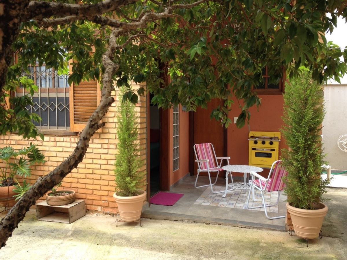 Hermosa y encantadora casa de campo ubicada en el patio trasero de mi casa (se encuentra en una calle agradable, en una zona con todas las facilidades cerca). El espacio es sencillo pero acogedor, alegre y cálido. Es un ambiente familiar y deseo recibir solo a personas de fuera de BH, que vienen de visita o por trabajo y desean alojarse en una casa familiar. La casa está equipada con elementos básicos y permite la independencia, pero se encuentra en el patio trasero de mi casa. ¡Siempre estaré disponible cuando me necesites!
