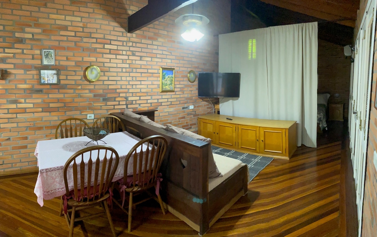 Disfrute de la comodidad de este alojamiento diseñado en el estilo Shabby Chic; una tendencia que está lejos de la sofisticación, pero sin perder la personalidad. La decoración mezcla afecto, creatividad y rusticidad. Todos los muebles, desde las paredes de la cabaña, fueron renovados por los propios propietarios del alojamiento, que disfrutan recuperando y resignificando objetos desechados inadecuadamente en las calles de la ciudad.