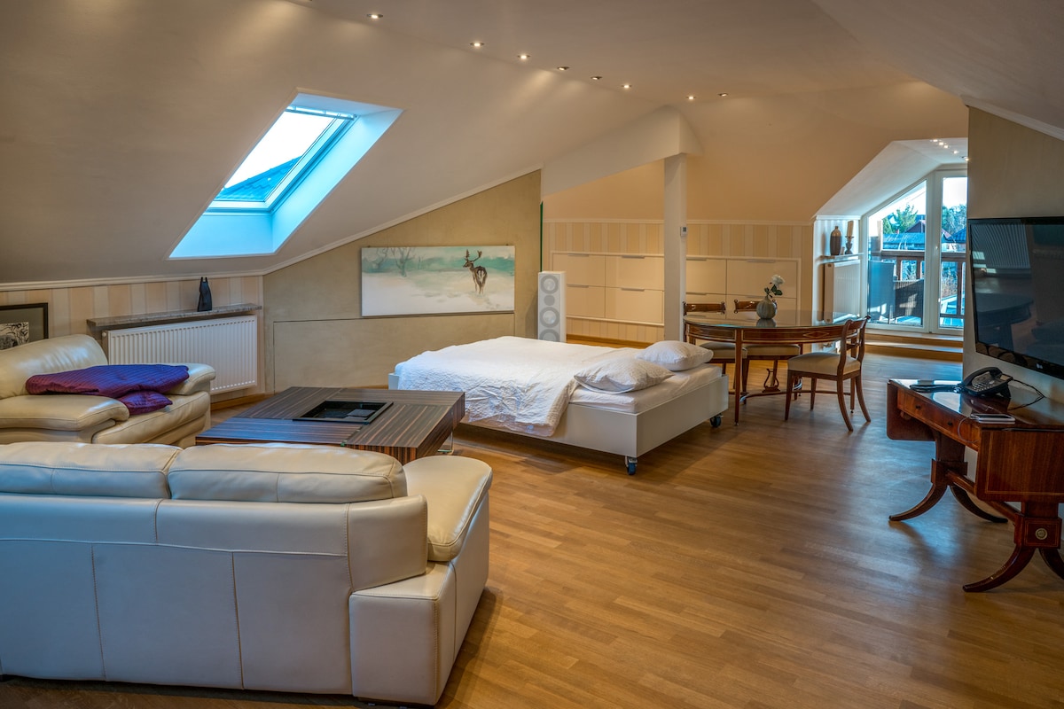 Estudio multifuncional lujosamente equipado para hasta tres personas en una tranquila casa unifamiliar directamente en el lago. Equipo: 2 camas en ruedas (desaparece en la pared cuando no está en uso). Armarios empotrados con un montón de espacio de almacenamiento. Cocina totalmente equipada con estufa de inducción y horno. Baño de mármol con inodoro AquaClean y ducha de lluvia. Balcón sur con vista al jardín. Área de conferencias para 20 personas. Escritorio ajustable en altura eléctrica con computadora. Estacionamiento en el alojamiento.