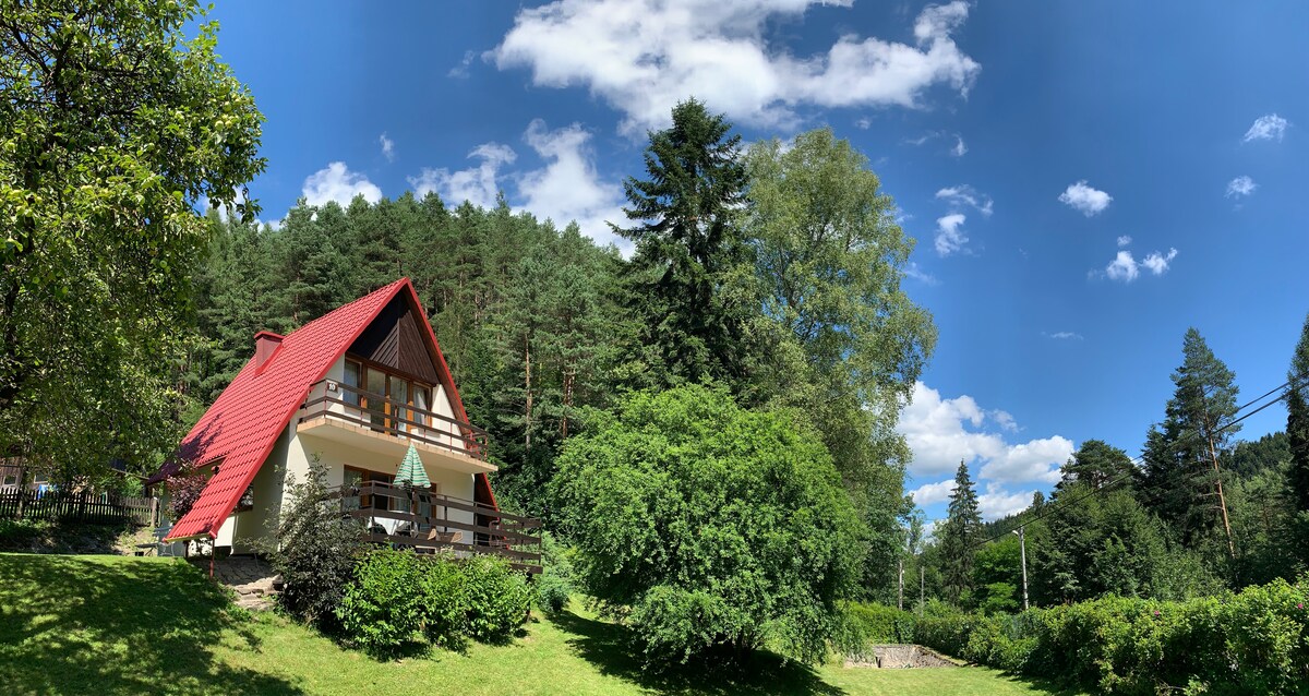 Situada en un lugar tranquilo en una colina con una vista única de las montañas Pieniny y mucho aire fresco de montaña, la casa tiene tres plantas, cuatro habitaciones, una cocina y, por supuesto, un baño. Es ordenada, cuenta con todos los servicios esenciales y es un punto de partida perfecto para hacer senderismo y visitar lugares de interés, o un lugar para disfrutar de un poco de paz y tranquilidad, leer o escribir. Tiene una chimenea y un acabado de madera, por lo que es un lugar estupendo para disfrutar de un poco del estilo local o de unos días románticos.