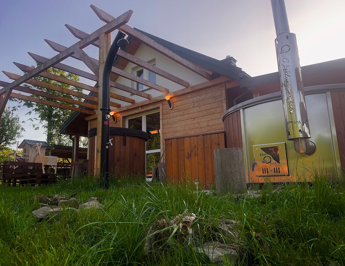 Te invito a relajarte en una casa de campo de madera de estilo montañoso en los Beskids. Construido a principios de 2023 Ubicada en un área tranquila, cerca del bosque con vistas al monte Jaworz. Numerosas rutas de senderismo y ciclismo. Hay un spa privado disponible. Una bañera de hidromasaje rusa perfecta para la relajación atmosférica y una sauna finlandesa con un barril de nogal. Aparcamiento gratuito, cocina, dos baños, amplia terraza, balcón (lado soleado), barbacoa, tumbonas, chimenea. Una casa de campo de alto nivel.