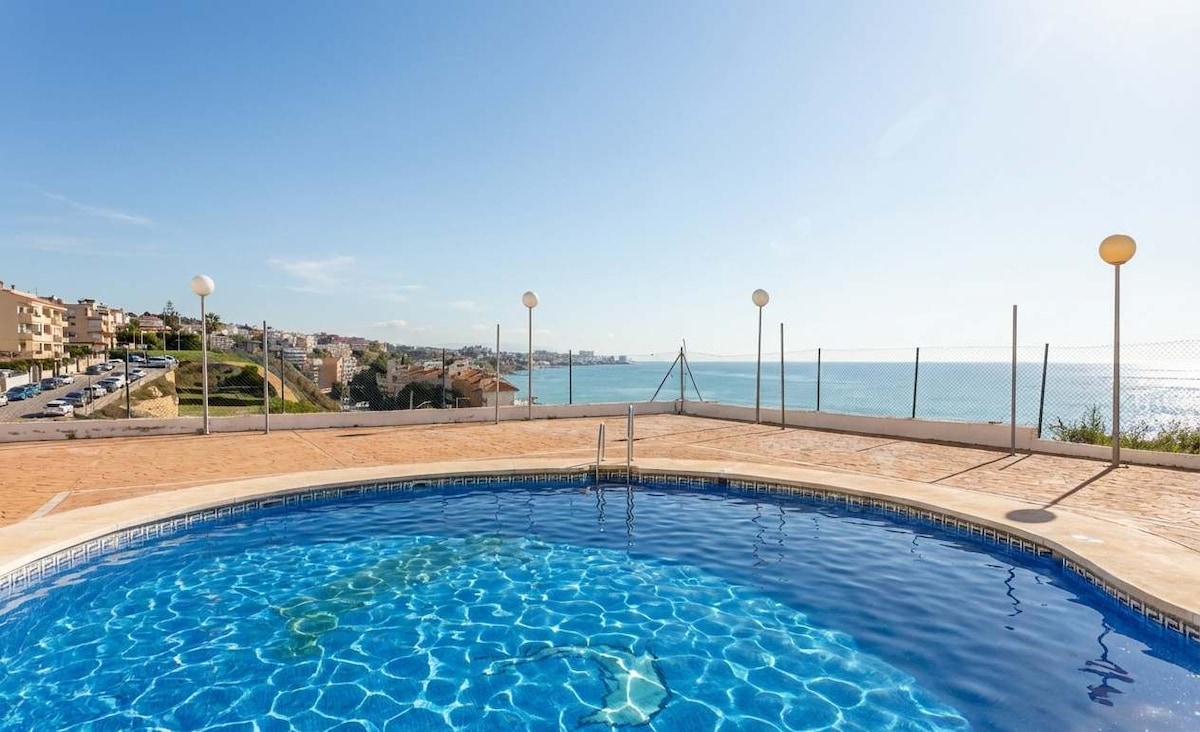 Cozy, bright, entirely renovated quality flat on the front line with sea views from the sunny and large balcony, both rooms and the bathroom. Features his and her shower, full kitchen, 2 tennis courts, 2 swimming pools (1 for children) large gardens, private beach area, free beach beds and private parking. We have a sandy beach with Blue Flag status and direct access to the sea boardwalk. Near Marbella and La Cala with 75+ restaurants and many shops walking distance. Strict cleaning protocols.