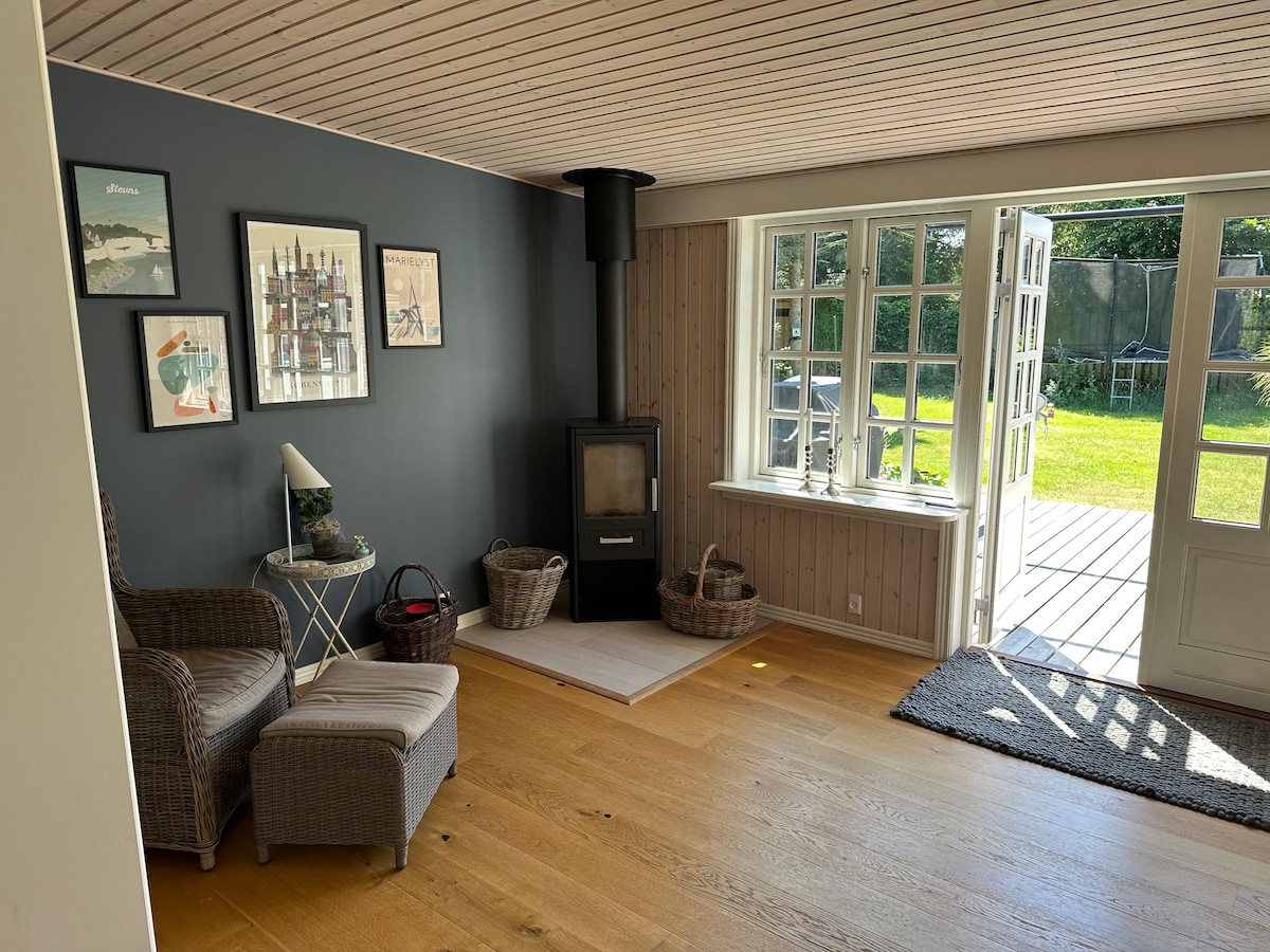 Experimenta el encanto y la serenidad de la isla en nuestra elegante morada, diseñada por la reconocida firma de interiores Norsonn. A solo 8 minutos de los cautivadores acantilados, nuestra casa irradia un ambiente bohemio romántico y vistas del majestuoso Mon. Disfruta de una escapada tranquila y privada. Con libros de mesa de café, comodidades modernas como wifi de 1000 MB, TV y aparcamiento. Las cómodas camas están preparadas para mayor comodidad y están incluidas en la tarifa de limpieza. ¡Te damos la bienvenida a tu refugio isleño!