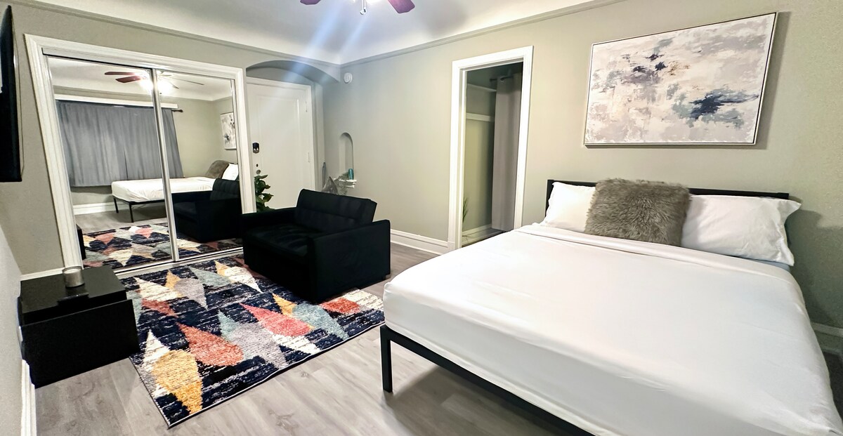 Elegante cama Luxe King con estacionamiento gratuito cerca de DT Oak Pk