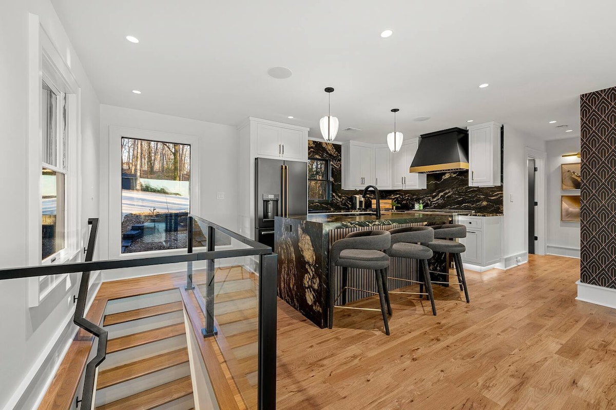 ¡Disfruta de una experiencia elegante en esta casa ubicada en el lago Lanier! El Hospital Northeast Georgia está cerca, hay muchos restaurantes alrededor y está en un vecindario seguro. Esta preciosa casa, con vista al lago desde la sala de estar, te invita a disfrutar de veladas románticas en un ambiente apacible, relajándote en el sillón de masaje, junto a la chimenea y los televisores de 65 pulgadas. Tienes la oportunidad de alojarte en una casa limpia y acogedora a un precio asequible. ¡Regresa y relájate en este espacio tranquilo y elegante!