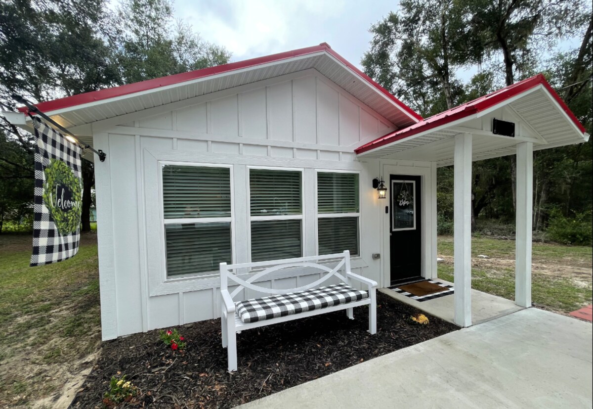 Escape to this cozy tiny cottage with king-size bed, full bath, kitchenette, and pet-friendly comfort. Relax under starry skies, enjoy farm views, and pick fresh vegetables or fruit from the garden and trees when in season. Just 15 min to The Villages, 20 min to Wildwood, 35 min to Ocala, 1 hr to Orlando, minutes from Brownwood live music, and quick access to the Turnpike & I-75. Perfect for a romantic, stylish getaway close to springs, trails, and local attractions.