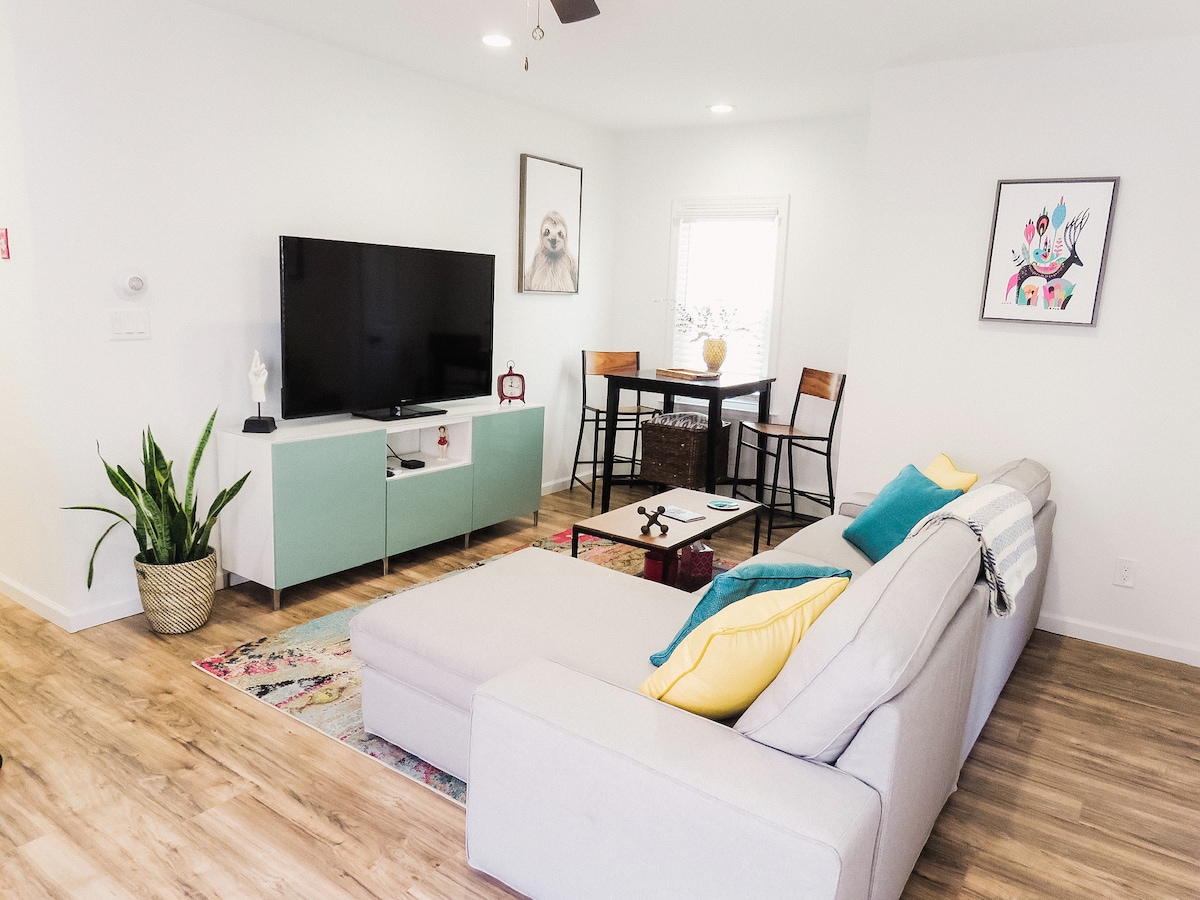 Relájate y disfruta del hermoso Asbury Park en este moderno apartamento tipo estudio de concepto abierto de 500 pies cuadrados ubicado en NW Asbury a 1,5 millas de la playa. Disfruta de una cocina totalmente surtida, lavavajillas y nevera para vinos. Wifi RÁPIDO y televisor inteligente de 65 pulgadas. Los pisos de concreto pulido, el área de trabajo separada para trabajar de forma remota, la cama tamaño queen y el sofá de gran tamaño completan el espacio. Este es un apartamento tranquilo (!) en un hogar multifamiliar con un patio trasero compartido. Llegadas anticipadas y salidas después de la hora establecida según disponibilidad a 10 $/hora