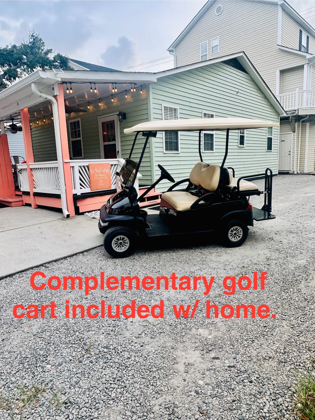 Our cozy cottage offers 2 bedrooms with queen beds, a queen size sleeper sofa in the living room, with a fully equipped kitchen. Accommodate your crew with seating for 6 in the dining area, plus two extra bar chairs. There is a television in the living room, and a second television in one of the bedrooms There is also a complimentary golf cart included.