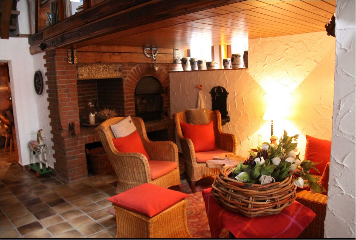 Sehr idyllisch gelegenes, freistehendes, 2-stöckiges Bauernhaus (Im Jahr 1915 erbaut - 2016 renoviert) mit ca. 180 m² Wohnfläche am Ende einer Sackgasse inmitten eines Pferdehofes für insgesamt 13 Personen in familiärer, kinderfreundlicher Atmosphäre.<br/> Ideal für Familien mit Kindern, Wanderer, Fahrradfahrer, Motorradgruppen, Monteure, Wanderreiter, Urlauber mit eigenem Pferd (Vollpension für Ihr Pferd möglich - keine Boxenhaltung).<br/> Grillgelegenheit direkt vor dem Haus. Eine ...