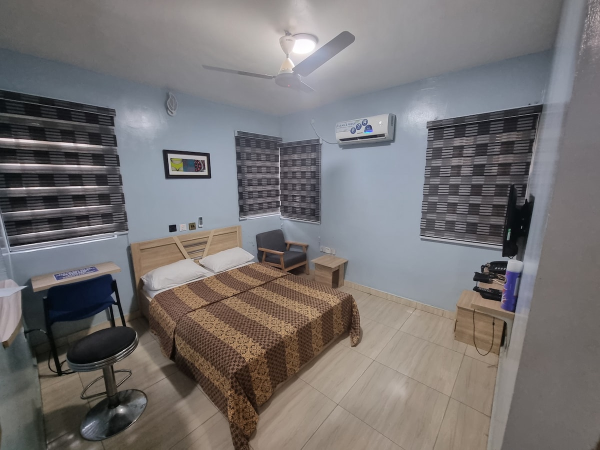 Moderno apartamento de 2 dormitorios en el corazón de Ikeja, que ofrece una estancia tranquila, elegante y administrada profesionalmente, organizado por un ⭐ Superanfitrión. El espacio está diseñado para la comodidad y la facilidad, con camas cómodas, wifi rápido, televisores inteligentes y una cocina totalmente equipada. Ubicado a minutos del aeropuerto y de los principales centros comerciales, ofrece un entorno tranquilo y seguro con energía las 24 horas, los 7 días de la semana y un balcón relajante. Ideal para viajeros de negocios, parejas o familias que buscan una estancia tranquila y sin estrés.