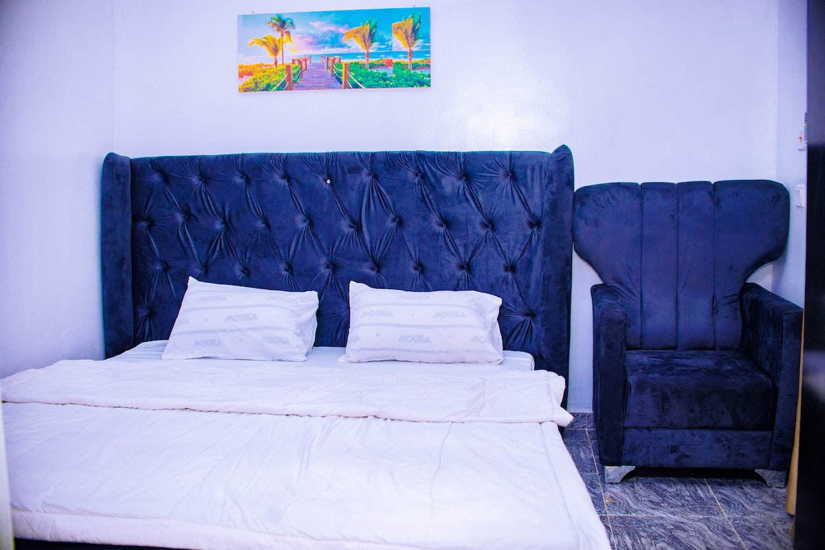 Te damos la bienvenida a Elmstead Luxury Aprt, tu elegante refugio en Lekki Ikota. Este refugio de 2 dormitorios y 2 baños ofrece comodidad de aire acondicionado, un televisor de 65 pulgadas en la sala de estar, televisor de 43 pulgadas en los dormitorios, WiFi ilimitado estable gratuito y energía las 24 horas, los 7 días de la semana con inversor y energía solar. Disfruta de la llegada autónoma con cerradura inteligente, estacionamiento gratuito, una lavadora en la vivienda y un castillo inflable para niños. 1 limpieza gratuita para estadías de más de 5-6 noches. Cerca del centro de conservación de Lekki, Mega Chicken, Blackbell y Blemco. Perfecto para viajeros solitarios, huéspedes de negocios, familias o estancias largas.