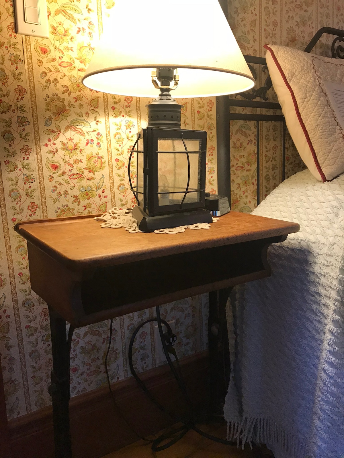 Esta habitación única está en una granja de 1820. Los pisos de pino anchos originales, los tragaluces personalizados con muebles antiguos y de reproducción resaltan el espacio. Una puerta corrediza antigua esconde el baño privado con ducha de pie. El aire acondicionado te mantendrá fresco en las noches cálidas ocasionales. La cama queen tiene un colchón de marca de lujo, por lo que debes disfrutar de un sueño reparador. Un ligero desayuno "sírvete" te espera por la mañana. La habitación está en el tercer piso. (NO accesible para discapacitados).