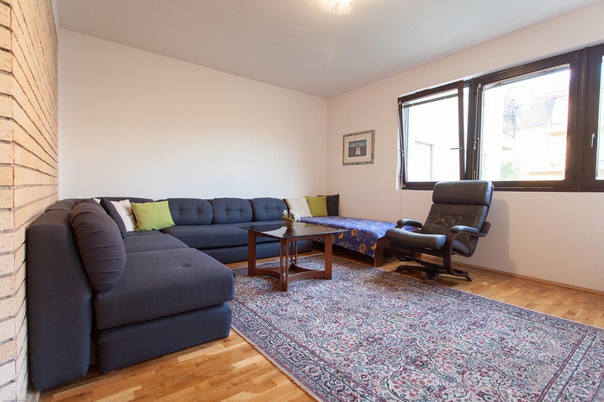Este departamento grande y cómodo está ubicado en el primer piso. Cuenta con un dormitorio separado con una cama tamaño king y un sofá cama en la sala de estar . Para mayor comodidad, también hay una cama individual plegable opcional que se puede utilizar si es necesario. Los huéspedes tienen acceso a una cocina privada, un baño y un balcón. El apartamento está a solo 40 metros del lago Ohrid, situado en la zona semicentral de la ciudad, a solo 7 minutos a pie de la plaza principal y del casco antiguo.