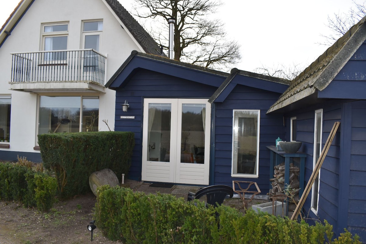 Una hermosa cabaña de madera, construida por nosotros mismos, amueblada para 2 personas. Se encuentra en el Stavasterbos, un pequeño parque, cerca de Lochem. La cabaña de madera tiene una habitación doble con una cama de 1,80 de ancho con 2 edredones. La cabaña tiene un jardín de unos 350 m2. Hay un bistró en el parque. Aparte de eso, no hay servicios generales. La casa de 3 km del centro de la ciudad y está ubicada contra una hermosa zona boscosa. Hay un pequeño cobertizo para guardar 2 bicicletas.