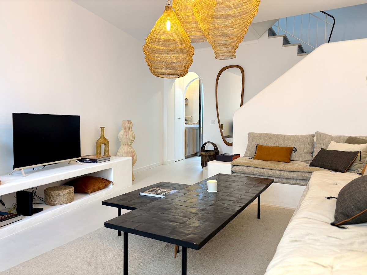 Hermoso apartamento de 3 habitaciones idealmente situado en el corazón del distrito histórico y la zona peatonal, a 2 minutos de la orilla del mar. Recientemente renovado respetando el alma y la arquitectura cubista tan particular de la ciudad de Olhão. Incluye una sala de estar con cocina americana y su primera terraza, dos dormitorios, un baño y la gran terraza privada en la azotea con su cocina de verano y jacuzzi climatizado. Aire acondicionado, WIFI, Smart TV, Nintendo, servicios de alta calidad.