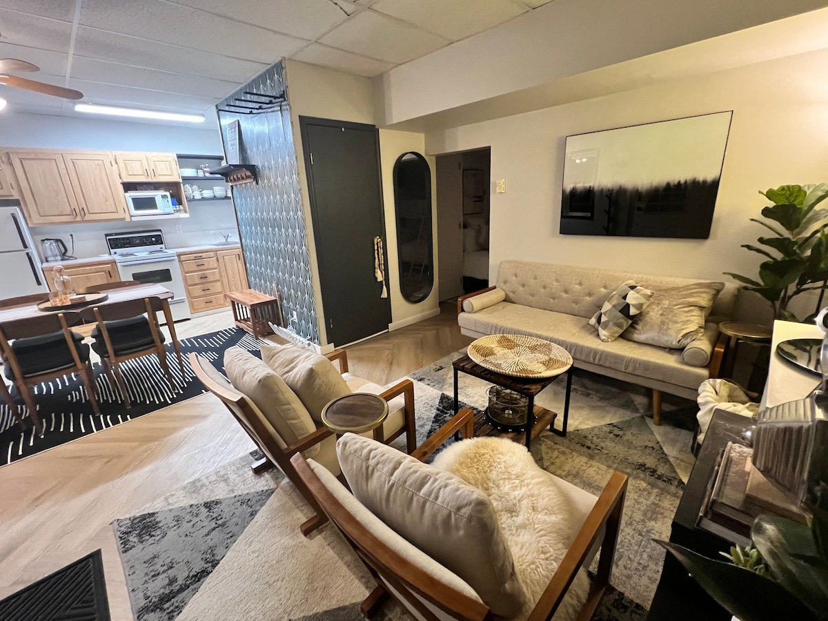 Bienvenido a la Unidad 3 en The Ultimate Okanagan Retreat. Esta moderna escapada en el tercer piso está a pocos minutos de las playas del lago Skaha, bodegas galardonadas, cafeterías artesanales y rutas de senderismo panorámicas. Esta suite de 2 dormitorios y 1 baño tiene capacidad para 6 personas con una cama tamaño queen, una litera individual sobre doble y un sofá cama doble. Disfruta de una cocina completa, pisos con calefacción, aire acondicionado, WiFi rápido y estacionamiento. Relájate en la azotea con una sauna, una inmersión en frío, una barbacoa y unas vistas panorámicas al lago y a la montaña: tu escapada definitiva a Okanagan.