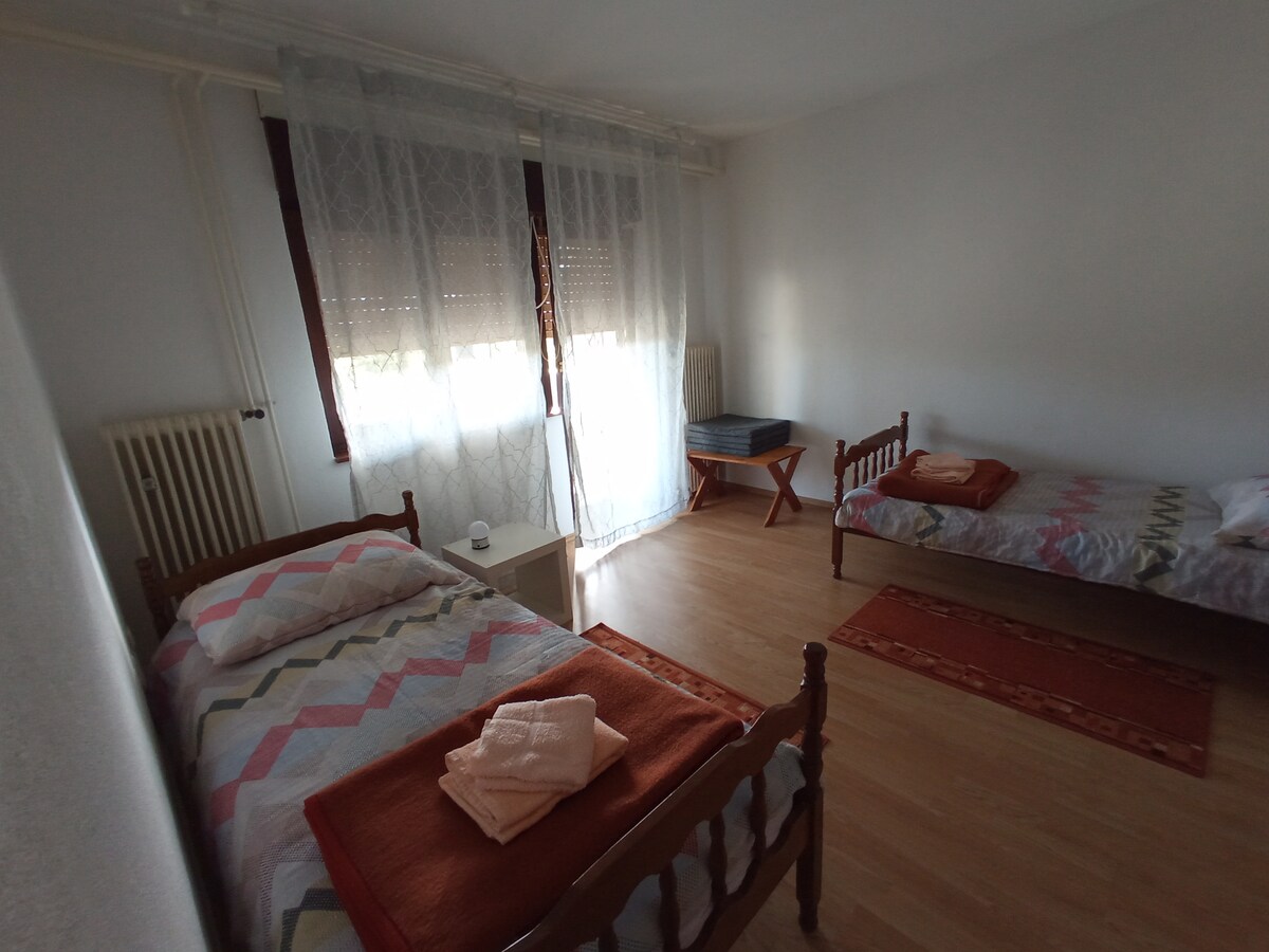 The apartment is suitable for one to five people. It’s well equipped for a pleasant stay. It’s situated on the first floor of a family house and it consists of two bedroom, a kitchen, a living room, a bathroom with a toilet, a balcony, a veranda and a parking lot. The apartment is equipped with cooker ( electricity), an owen, a fridge, a microwave oven, a coffee machine, a TV set, a radio, a satellite TV, wireless Internet, air-condition, central heating, linen and towels,washing machine.