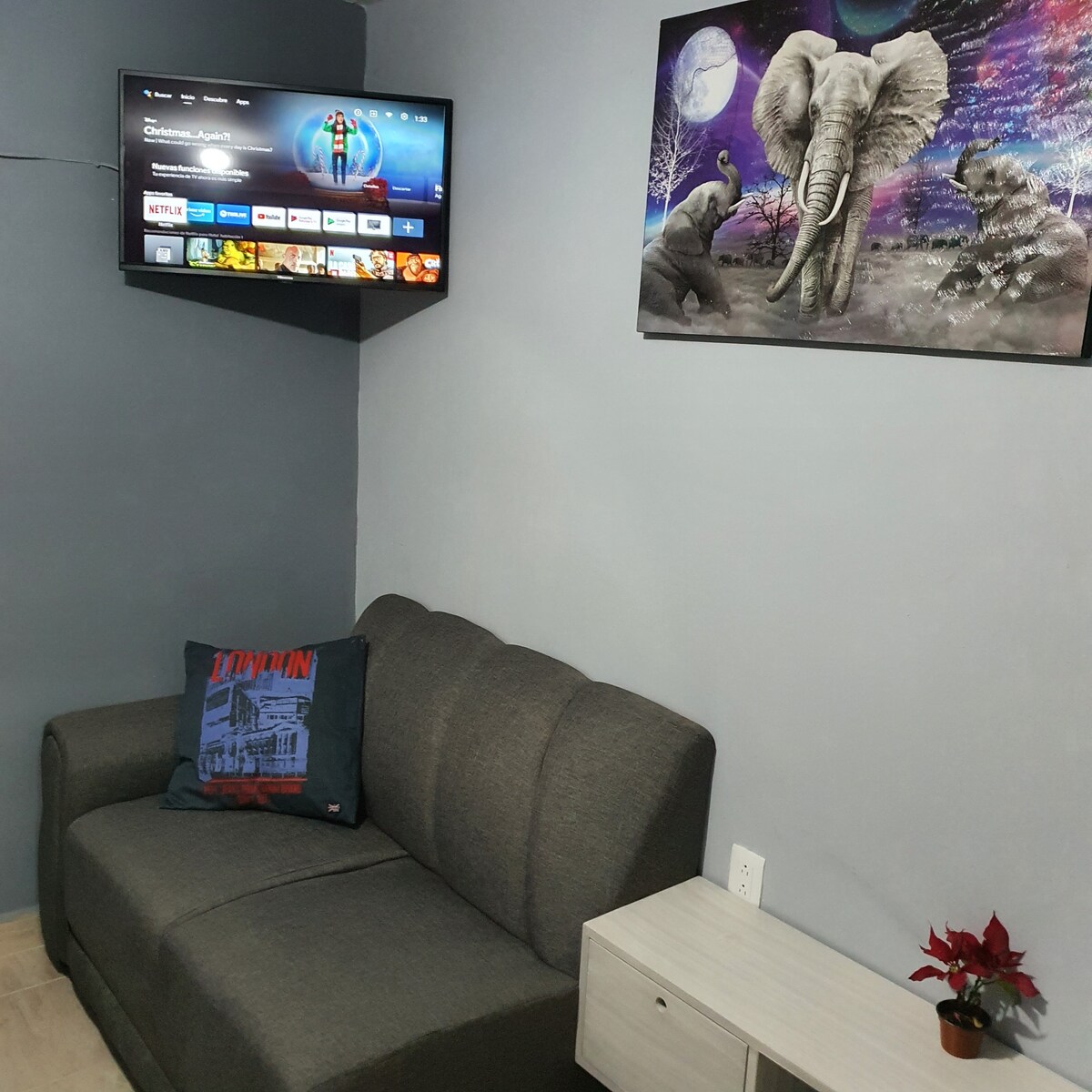 🏠 A unos pasos de toda la diversión. Factura por comisión adicional. Departamento interior pequeño, pero muy cómodo, céntrico, dos recamaras, sala, cocina-comedor, dos baños, cuarto de lavado, pasillo de entrada compartido. 🔷 Recamara 1: cama kingsize 🛏️ smart tv 📺 streaming, baño completo 🛁 🔷 Recamara infantil: cama individual 🛏️ 🧸🚗 🧩 baño completo chico 🚽🚿 🔷 Sala: smart tv 📺 streaming, sofá cama 🛋️ 🔷 Cocina-comedor 🍽️, frigobar, microondas y estación de café ☕️