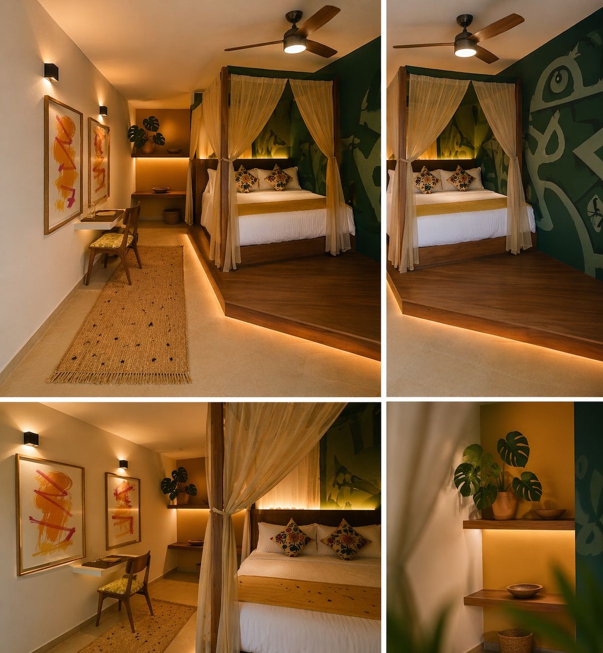 La Luxury Queen de Mikasa Hotel Lagoon Front es un refugio íntimo que combina diseño sofisticado, confort y armonía natural. Ideal para viajeros que valoran los detalles, ofrece una atmósfera cálida con maderas finas, texturas naturales e iluminación. Su cama premium asegura un descanso profundo. Cuenta con balcón, baño privado, amenidades de lujo, aire acondicionado, caja fuerte, smart TV, WiFi, servicio de restaurante (costo extra) y acceso al muelle, alberca y jardines.