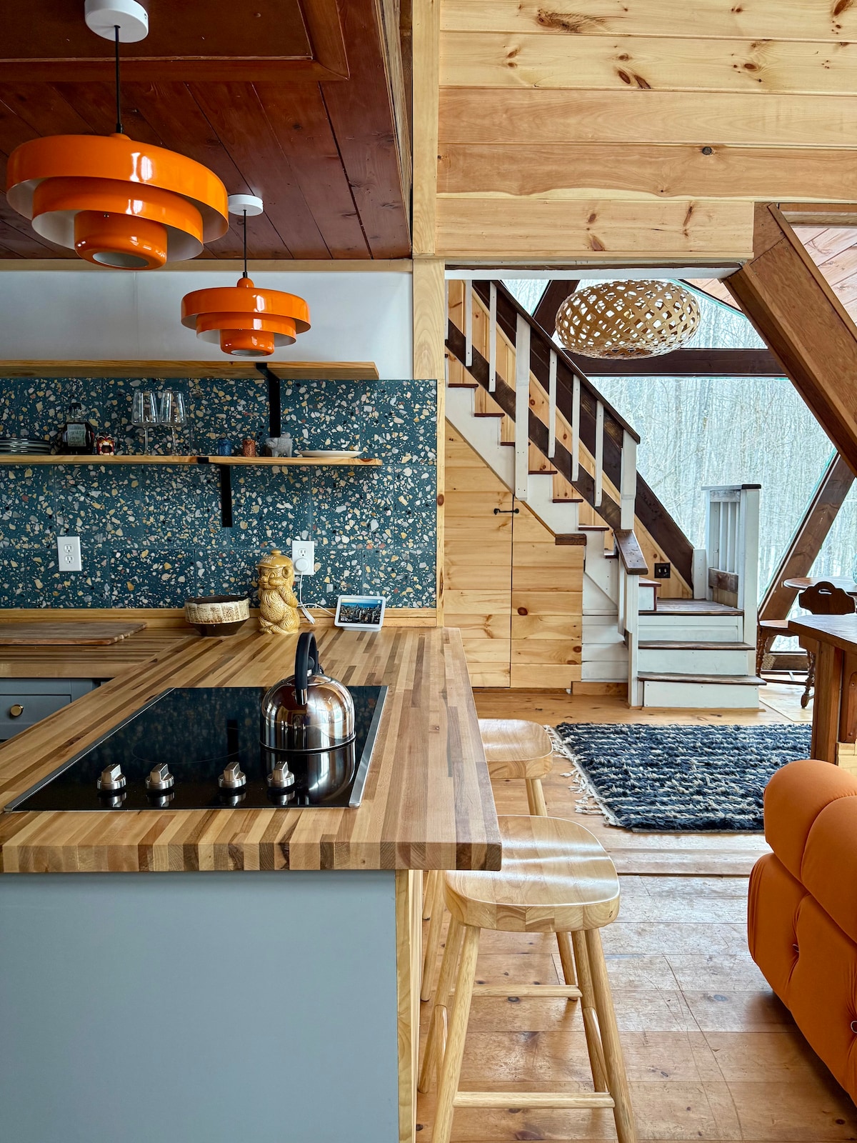 Nuestra moderna casa de troncos está equipada con cosas finas como toallas turcas, jabones artesanales locales y las sábanas más suaves. La decoración de buen gusto tiene un ambiente mcm con toques industriales. Pasea al aire libre, nada, sigue un arroyo, deslízate por el bosque, camina de regreso, cocina la cena en una cocina de última generación con una despensa llena de divertidos artilugios. Relájate junto a la chimenea, siéntate afuera y mira las estrellas, enciende un fuego. Proporcionamos mantas y madera. Una cesta de bienvenida y una cafetería totalmente abastecida para las mañanas te esperan.