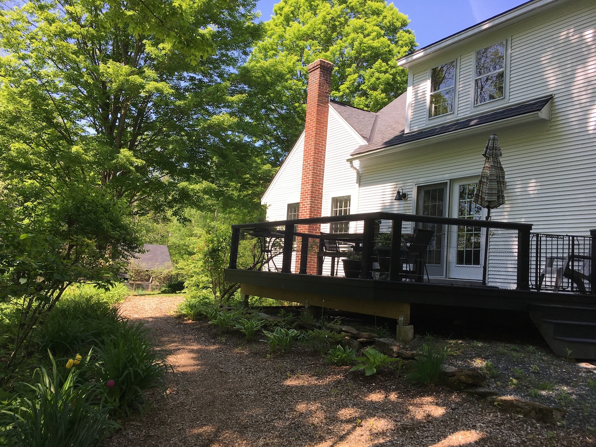 Lujosa casa de campo bien equipada - Hermosa vista del amanecer ubicada entre Woodstock VT y Hanover NH. Un regalo inspirador para la escapada de los músicos es una cocina Steinway Full de 1929 completamente restaurada, gabinetes personalizados, chimenea de gas, bomba de calor de bajo consumo, lavadora, secadora. Cama tamaño queen MUY cómoda. Escapada romántica en el bosque, relájate, trabaja en paz, explora la belleza y la historia de la zona. Senderismo, ciclismo, pesca, paseos en globo aerostático y compras están cerca. Alquiler largo (90 días) o de fin de semana
