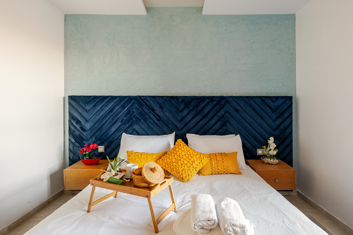 Découvrez notre luxueux appartement à Bouznika Costabeach parfait pour les familles, où les voyageurs d'affaires. Ce logement moderne de 2 chambres comprend un salon élégant avec trois télévisions, Wi-Fi fibre optique, un espace de travail et une cuisine entièrement équipée. Profitez des deux terrasses, de la climatisation et des commodités de la résidence avec piscine, parking et sécurité 24h/24. À quelques pas de la plage et des attractions locales. Réservez pour un séjour exceptionnel !