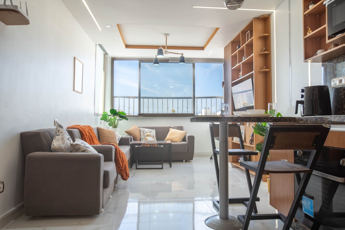 🌞 Espléndido apartamento de 3 ambientes orientado al sur en el corazón de la Marina de Agadir, en el barrio más popular. Disfrute de acceso directo a la playa desde la residencia. Moderno y luminoso, incluye una cocina equipada abierta a una gran sala de estar, un balcón y una logia con vistas despejadas a la gran piscina. Habitación principal estilo love room, Smart TV, internet de fibra de alta velocidad gratuito. Tiendas y restaurantes a poca distancia. Ideal para familias, parejas o amigos.