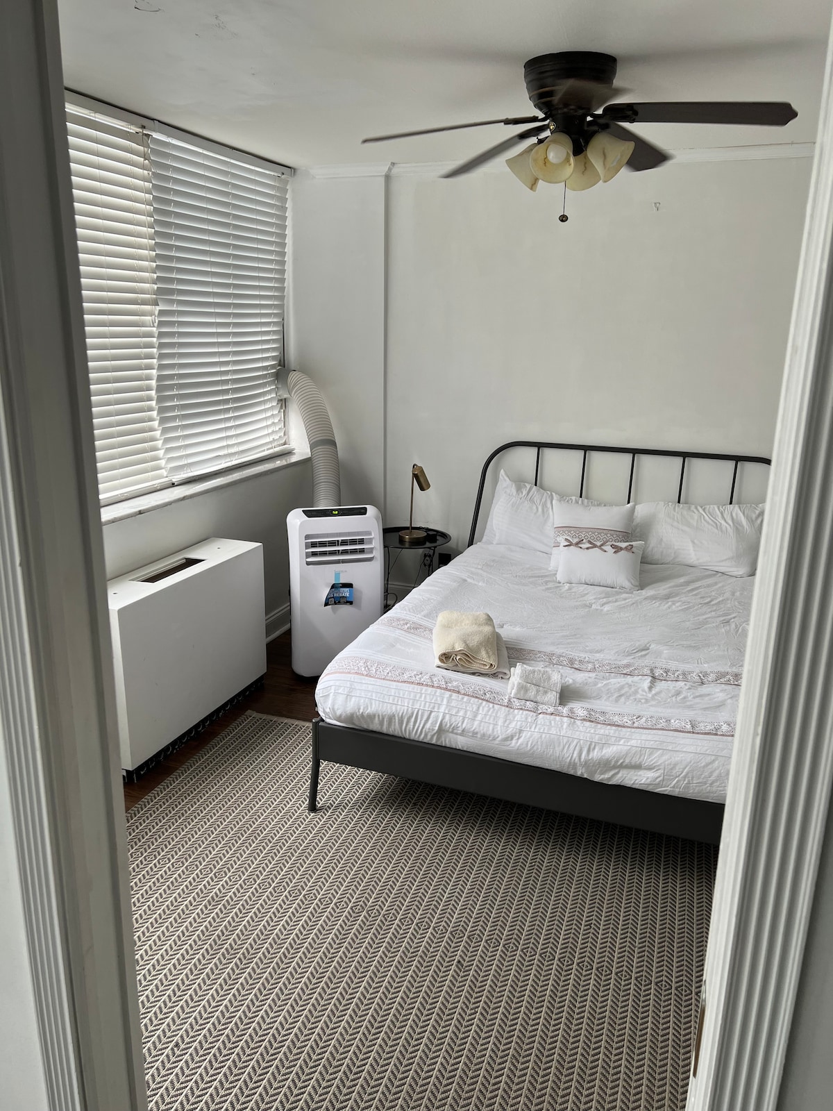 Nuestro apartamento está situado en el centro de ATL. Fue construido en 1968 y el edificio tiene calefacción y refrigeración centralizadas. Queríamos ofrecer nuestro apartamento de 2 dormitorios que hemos intentado hacer elegante, hogareño y familiar (también soy madre). Tenemos una cocina completa, una zona de trabajo privada/solárium con 2 monitores con una estación de acoplamiento universal (pueden ser necesarios tus propios conectores), habitaciones con estaciones de carga y televisores ROKU. Nos encanta ATL y queremos que tu familia también se enamore de GA.