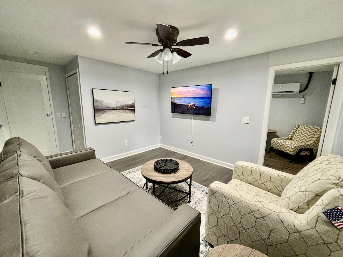 Nuevo apartamento tipo estudio con entrada independiente. Cocina totalmente amueblada, cama tamaño queen nueva, todos los muebles nuevos, incluida la zona de escritorio, wifi, mucho espacio de almacenamiento, nevera nueva, estufa, microondas, TV de 42 pulgadas y lavavajillas. La unidad incluye lavadora y secadora propias y tiene una hermosa vista al lago en frente. Ubicado cerca de cines, bolos, restaurantes, centros comerciales, tiendas de comestibles, gran parque recreativo estatal, esquí y convenientemente cerca de aeropuertos. Baño dentro de la unidad con 2 sillas reclinables.