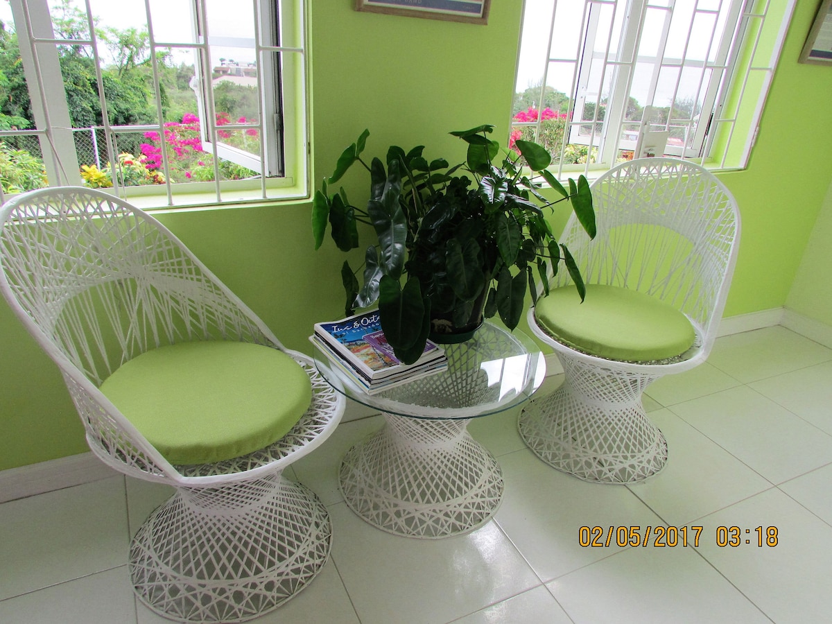 Céntrico, elegante, limpio, ventilado y luminoso: ya sea que quieras relajarte en la playa, visitar la Universidad de las Indias Occidentales, ver críquet o ir de compras, nuestro apartamento independiente es perfecto para ti. A solo 3 km de las hermosas playas de la costa oeste y Kensington Oval y a aproximadamente 3,4 km de la zona comercial Dome Mall: hogar de tiendas y servicios bancarios. Relájate en el balcón de la azotea y contempla el amanecer o siéntate en el pintoresco patio trasero y disfruta de una puesta de sol junto al mar.
