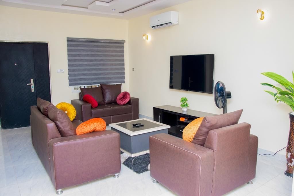 It's a two-bedroom flat in one of Ibadan's most secure and peaceful neighborhoods. You can feel the quiet environment as soon as you enter the government-reserved area. It's a fully air-conditioned flat with a living room and a television. There are two rooms, each with a queen-size bed and a bathroom and toilet. A fully equipped kitchen with all necessary utensils ravailable. Power supply on standby. A cleaner and a security guard always hand to assist you with everything you require.