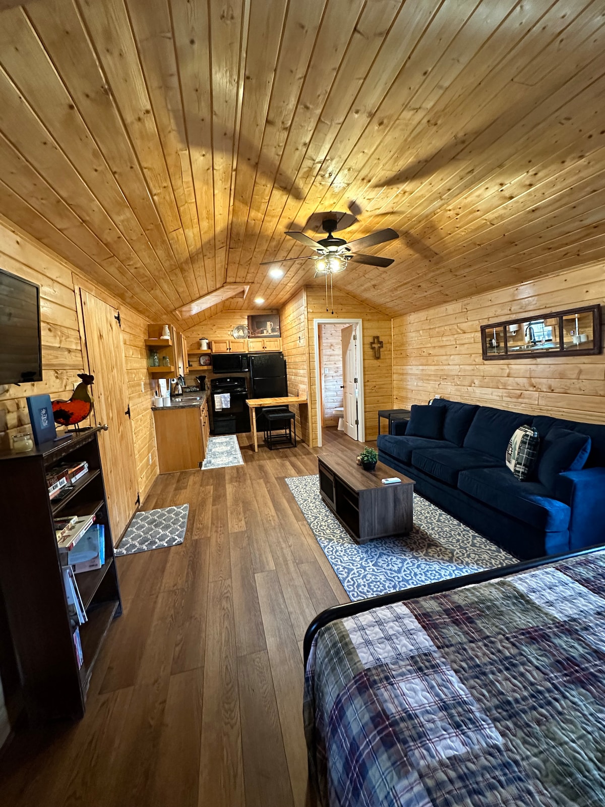 ¡Bienvenido a nuestra acogedora cabaña de un dormitorio situada en el corazón de Russell Springs/Columbi, Kentucky! Esta encantadora cabaña es perfecta para los viajeros que buscan tranquilidad y relajación. Rodeada de exuberantes bosques, disfrutarás de la suave brisa que cruce los árboles. La cabaña cuenta con una cómoda cama tamaño queen, una cocina totalmente equipada y una acogedora sala de estar. En el exterior podrás relajarte en la amplia terraza o contemplar las estrellas por la noche. Reserva ahora y crea recuerdos inolvidables en la pintoresca campiña de Kentucky.