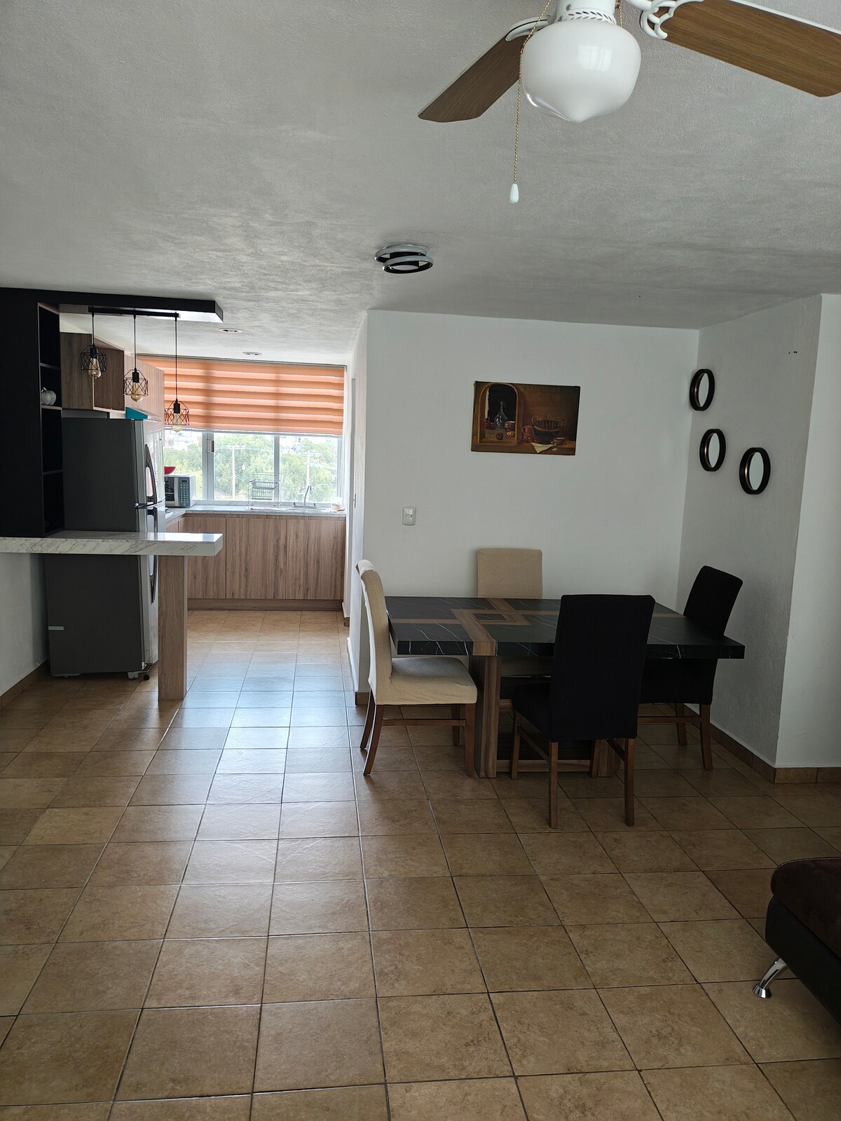 Este moderno Departamento te ofrece encantadores detalles: cuenta con tres recámaras (King, matrimonial e individual) cada una con clóset. Tiene una cómoda sala, comedor, cocina equipada, un baño completo y área de lavado y tendido. En las instalaciones encontrarás un Gym compartido, un pequeño Bussines Center, lavandería (con costo extra) y estacionamiento privado. Seguridad todo el tiempo y para tu comodidad. ¡Nuestro acceso es automatizado! Ideal para disfrutarlo con tu familia o amigos.
