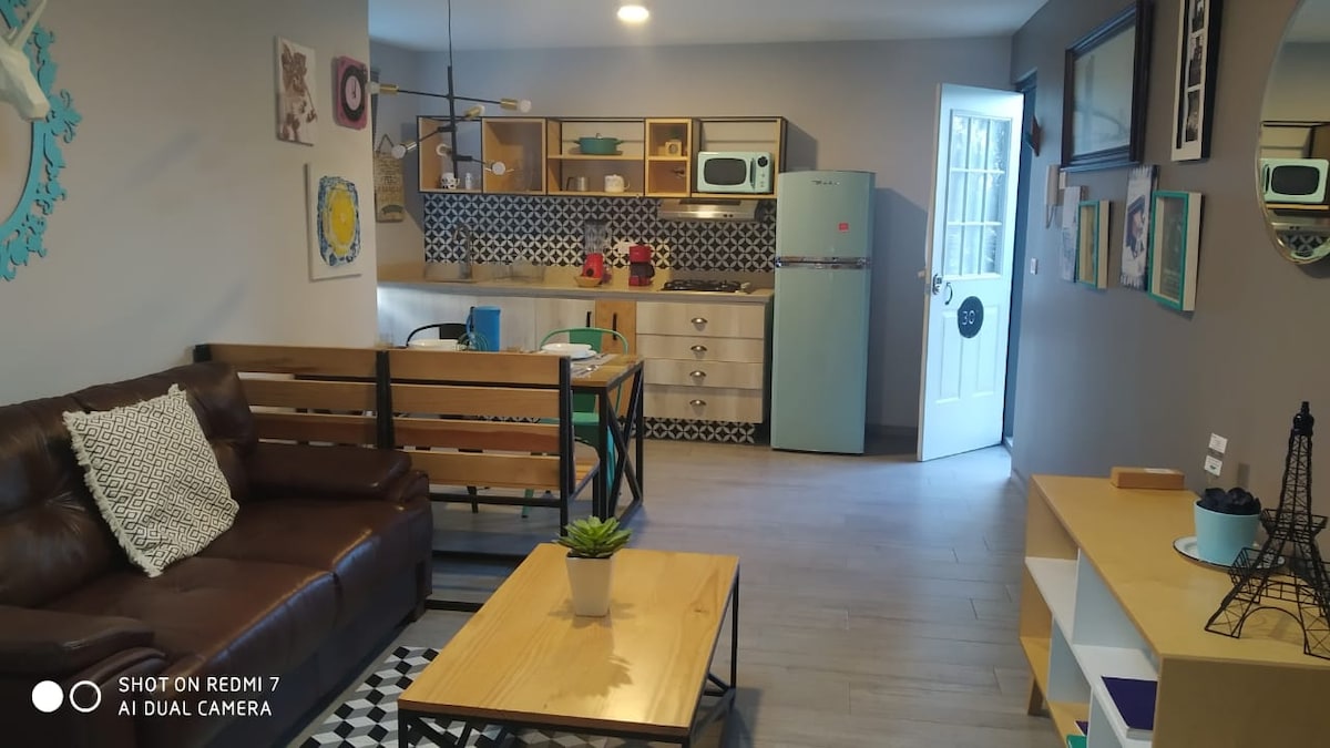 Bienvenidos, Departamento LIUK esta ubicado en una zona muy céntrica y con muchas amenidades a sus alrededores. Alojamiento apto para viajeros, trabajadores, pareja o familia que buscan descanso, trabajo o explorar la ciudad y alrededores. Está equipado para estancias largas o quienes prefieren sentirse en casa. Cuenta con cocina equipada, sala con sofá cama, recámara con cama matrimonial confortable y baño privado, diseño práctico y acogedor.