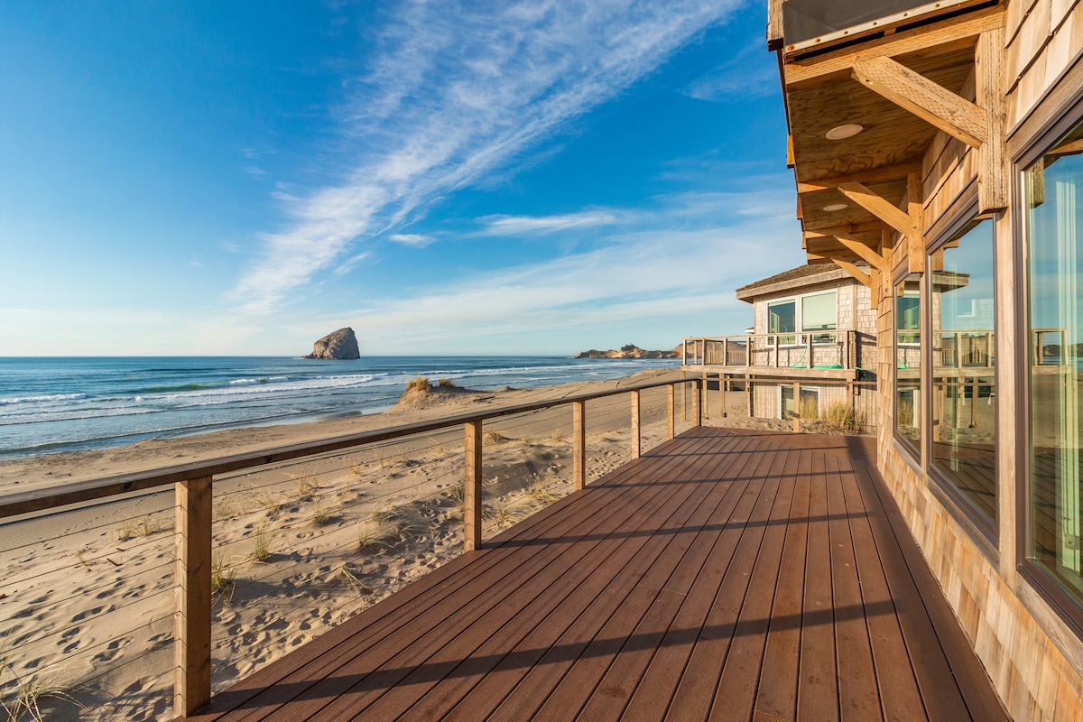 Moderna casa de lujo frente al mar en Oregón con vistas a la playa desde el suelo hasta el techo. Disfruta de más de 150 pies de frente al mar en la propiedad, la mayoría en Pacific City, Tierra Del Mar y en gran parte de la costa de Oregón. ¡Un lugar perfecto para reunirse con familiares y amigos o para una escapada romántica! Disfruta de hermosas puestas de sol, largos paseos por la playa, fogatas nocturnas y acceso directo a la playa. Una cocina bien equipada para crear la comida perfecta y una refrescante ducha al aire libre después de un día de surf y arena.