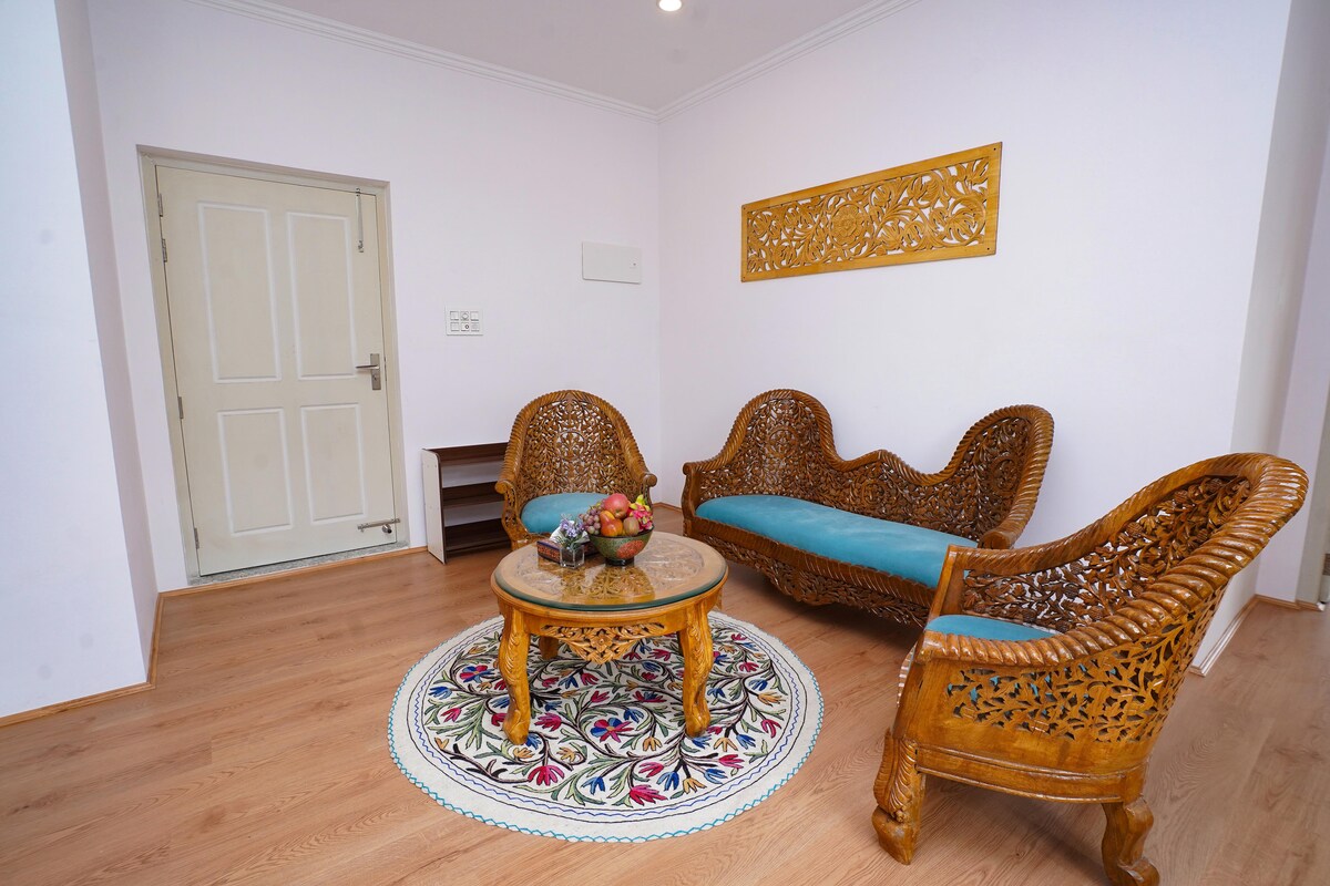 Elegante apartamento 2BHK con aire acondicionado | Cerca del lago Dal y el centro de la ciudad