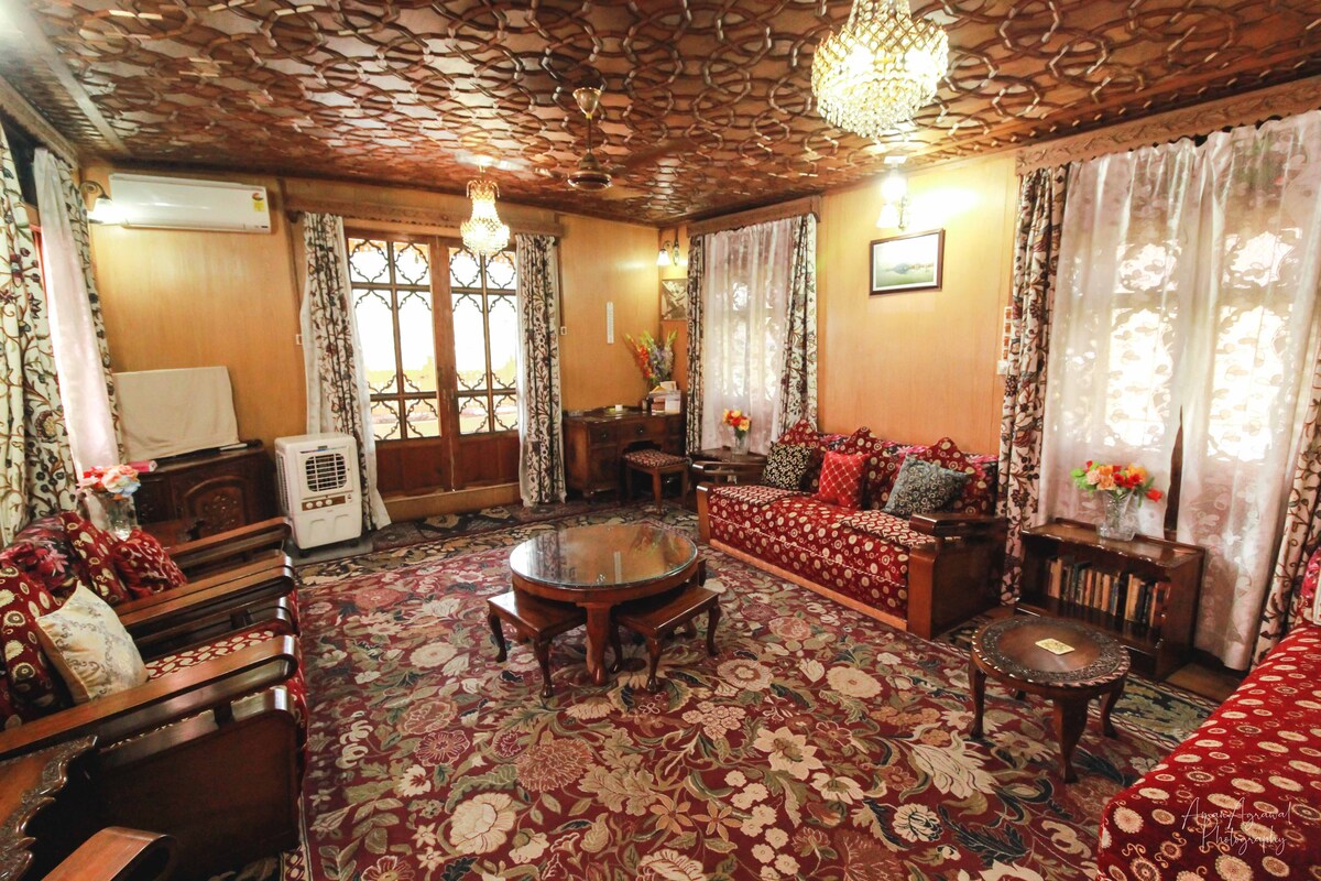 1. Detalles del alojamiento: Una reservación consta de: -1 dormitorio (privado) - 1 vestidor/consigna (privado) -1 Sala de estar (privada) - Vestíbulo (privado) - Cocina personal (cargos adicionales) 2. Ubicación: - A 50 m del lago Dal - A 50 m del mercado de Dalgate. 3. Servicios cercanos: - Cajero automático, banco y hospital - Puntos de venta de alimentos, especialmente opciones veganas: -Krishna Dhaba -Gulab - Dhabas locales. 4. Transporte: - Transporte local disponible en la puerta para varios destinos, incluidos los jardines Mughal, Lal Chowk, etc.