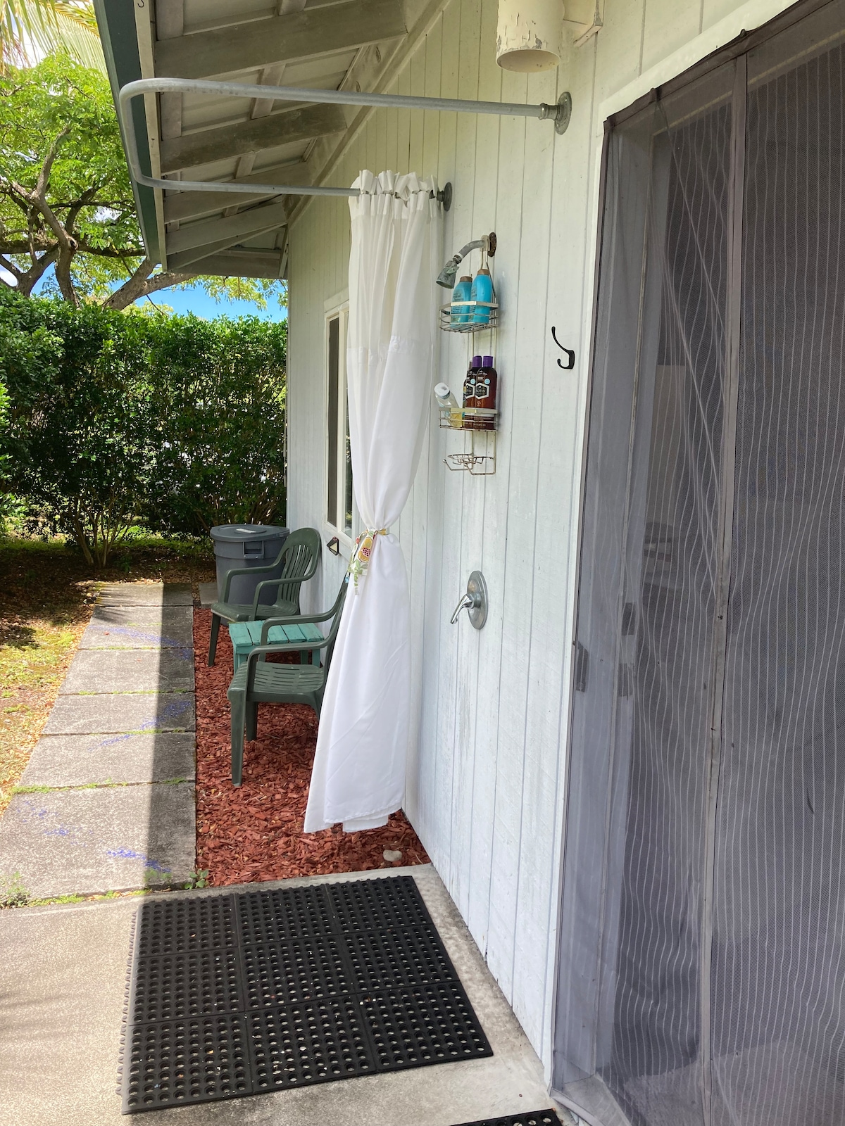Por favor, ven y disfruta de nuestra tranquila y limpia unidad de primera planta. Siéntate y relájate en el lanai cubierto o disfruta de una copa de vino junto al fuego. Escucha mientras las coquis te adormecen por la noche y te despiertan suavemente con la cacofonía de aves tropicales por la mañana. La unidad de la planta baja en J&R's Banana Cabana ofrece una cómoda cama tamaño queen, cocina americana con microondas y nevera, y un baño privado completo. ¡Ven a alojarte, disfruta y relájate!